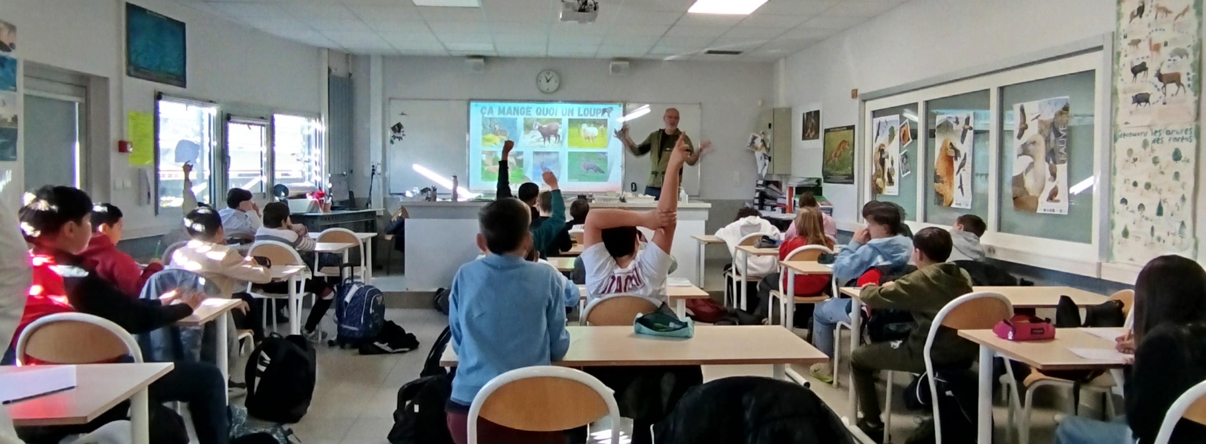 Animée par M. Germain, spécialiste des grands prédateurs , cette intervention mise en place tous les ans au collège constitue un moment fort du" parcours éco-citoyen " des élèves et permet de les sensibiliser au monde sauvage et à la nécessité de le préserver.
