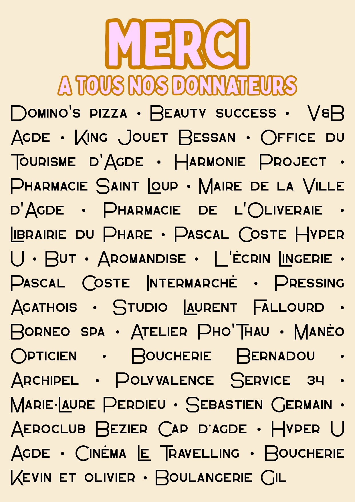 - Les nombreux sponsors et commerçants, dont les dons ont permis de proposer des lots variés et attractifs;