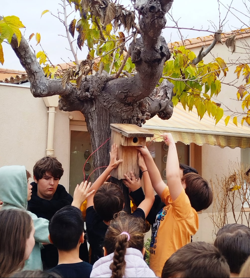 Mardi 9 décembre dernier, les éco-délégués du collège PEV se sont rendus à l'école Albert CAMUS d'Agde pour y installer des nichoirs à destination des mésanges.